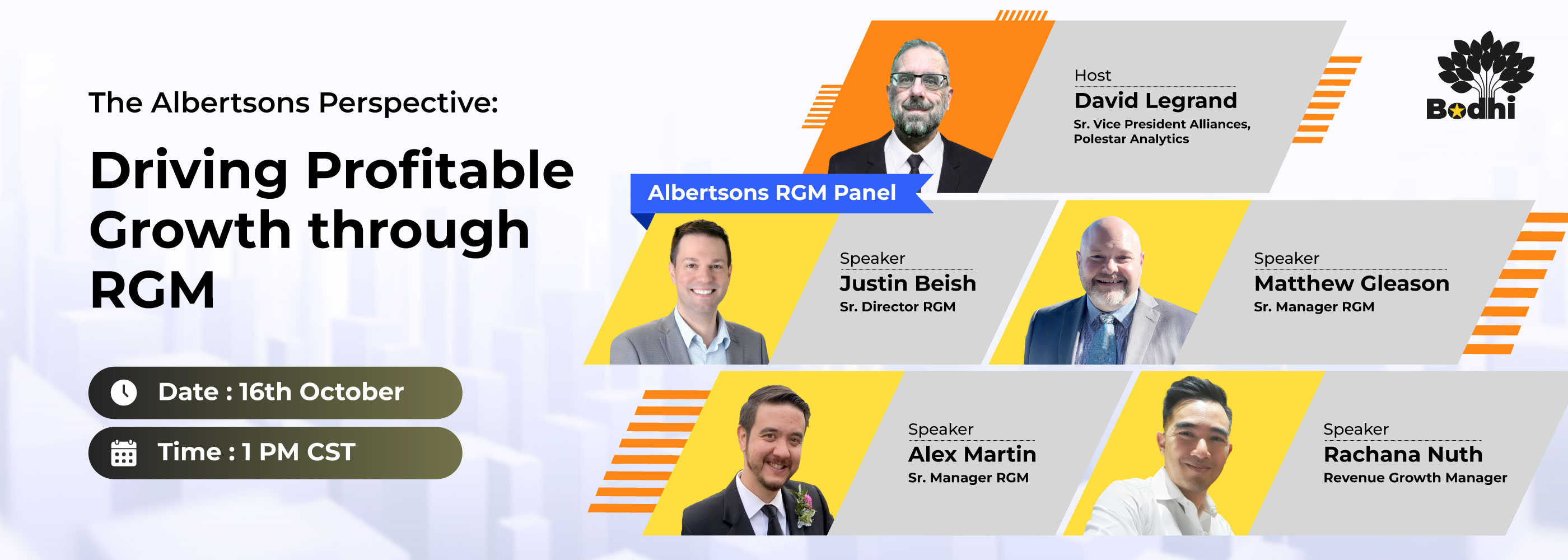 In today's evolving retail and consumer goods landscape, organizations face growing pressure to optimize pricing, promotions, and product assortment to achieve sustained profitability and growth. Join us for a compelling session featuring leaders from Albertsons, who will share their perspectives and practical insights on implementing effective Revenue Growth Management (RGM) strategies.